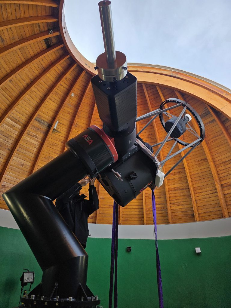 On December 2, 2025, specialists from the Austrian company ASA Astrosysteme GmbH installed the 80-cm telescope ASA800 RC f6.85/f2.5, purchased for the needs of Rozhen NAO, in the repaired and renewed dome of the old 60-cm telescope. Currently, the 80-cm telescope is being equipped with the computing and observation equipment necessary for its operation: computer and software (MaximDL) for controlling the telescope, filters, CCD camera. Initially, the filters and CCD camera of the old 60-cm telescope will be installed, and subsequently it is assumed that new filters (including polarization ones) and CCD camera will be purchased.